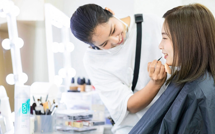 普段メイクと撮影用のメイクは違います! 照明やデジタル発色を計算したヘア&メイクを行います。